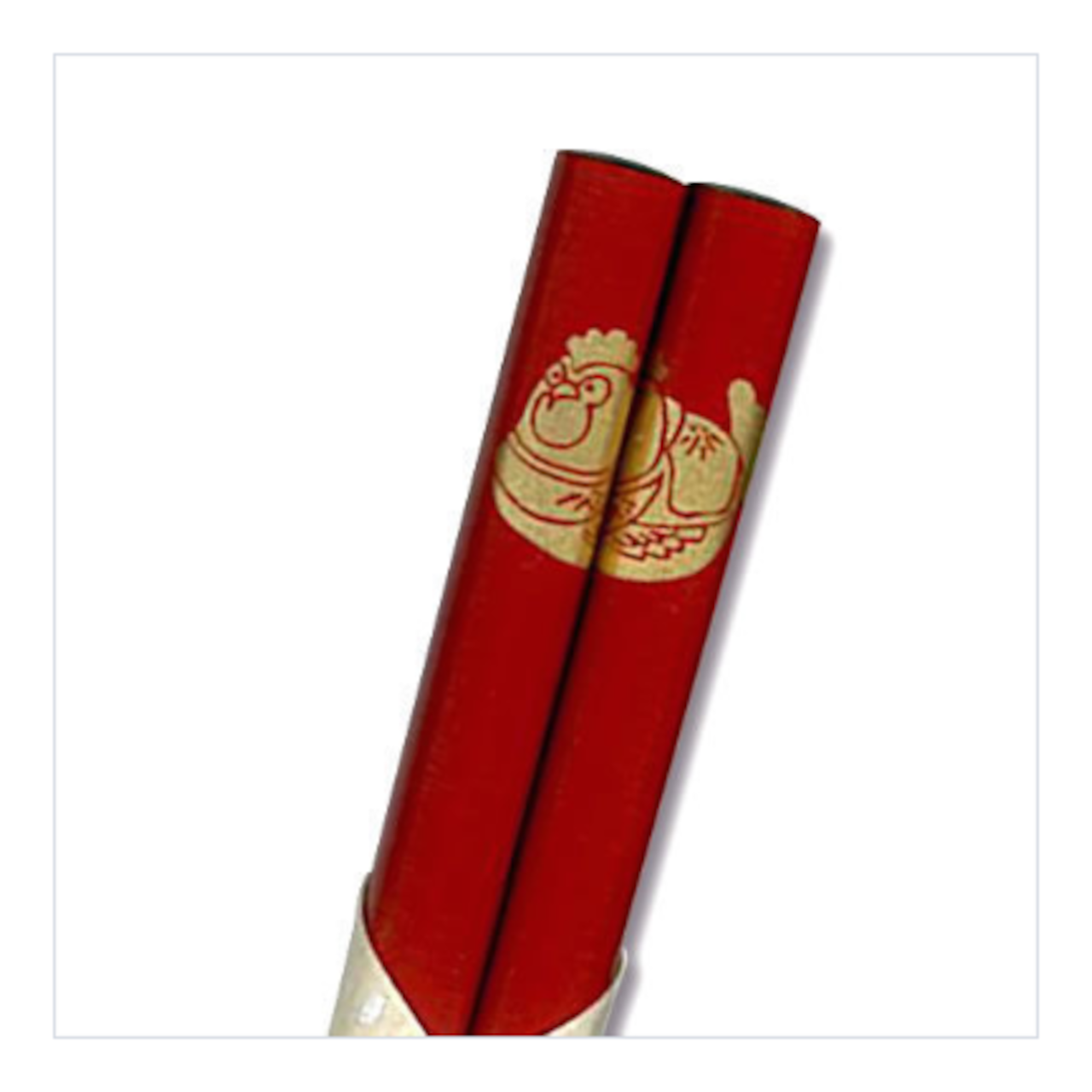 干支「酉・とり」を描いた漆塗り仕上げの箸、1膳。